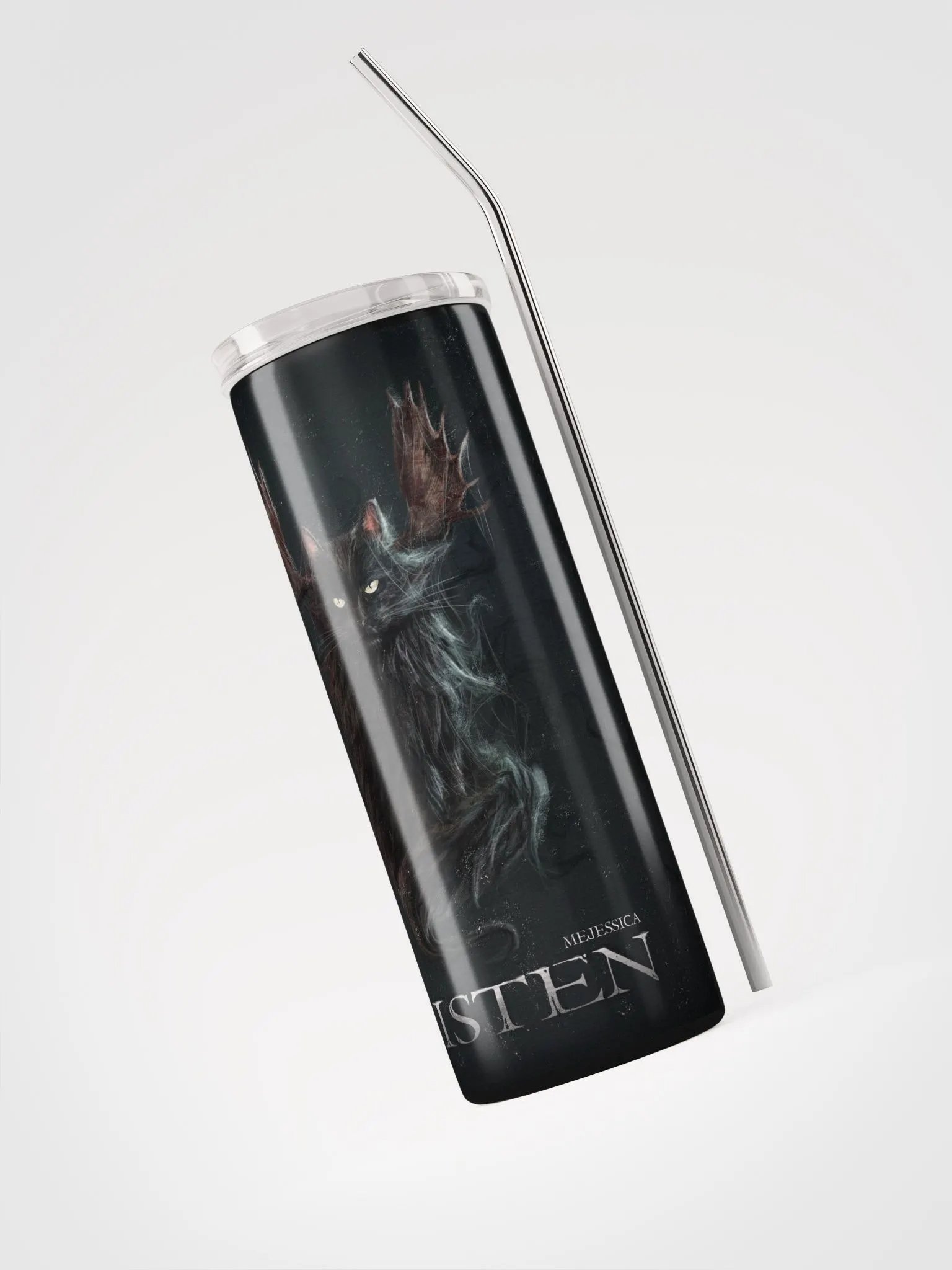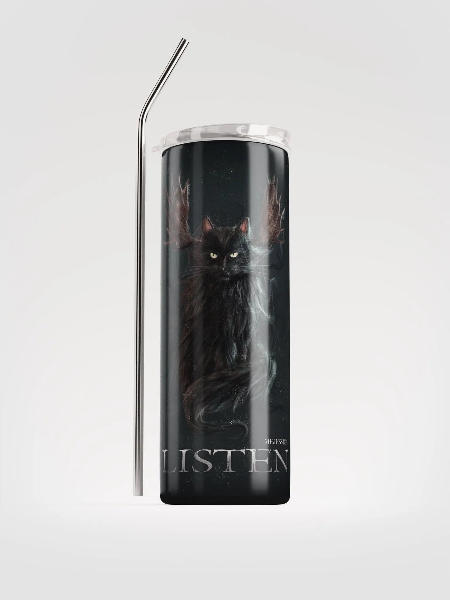 "Listen" cup with straw I guess